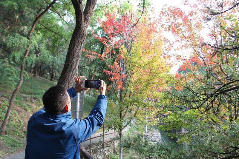据公园管理处工作人员介绍,园内栽植有黄栌、元宝枫、银杏、栓皮栎等本土树种,更引进丽红元宝枫、秋火焰、秋日梦幻等彩叶品种,共计十余种彩叶植物,已开始进入最佳观赏期,呈现“红叶流丹、翠色点缀、漫山炫彩”的多层次景观。观赏期预计可持续至11月中旬。
